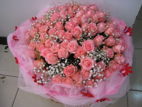 材質(料)說明: 99朵粉玫瑰.滿天星