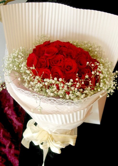 材質(料)說明: 33朵紅玫瑰.滿天星