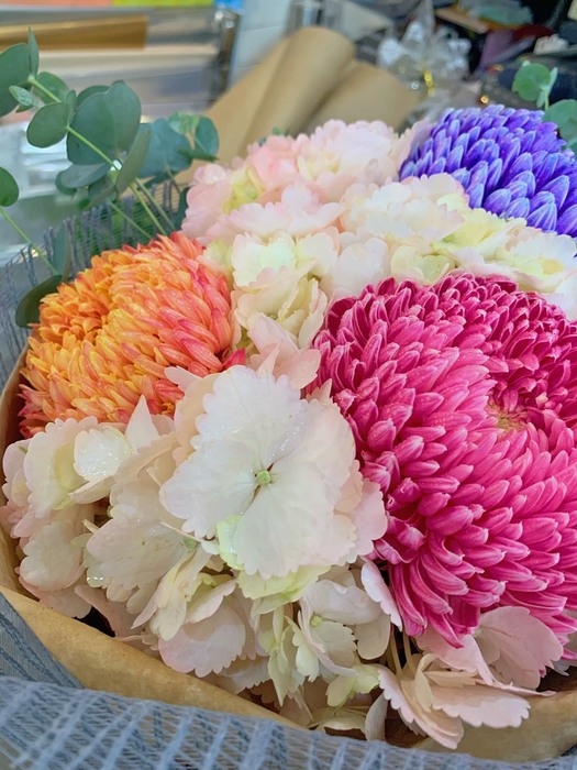 材質(料)說明:牡丹菊、繡球花、葉材