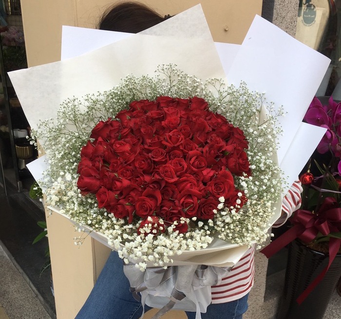 材質(料)說明: 99朵紅玫瑰.滿天星